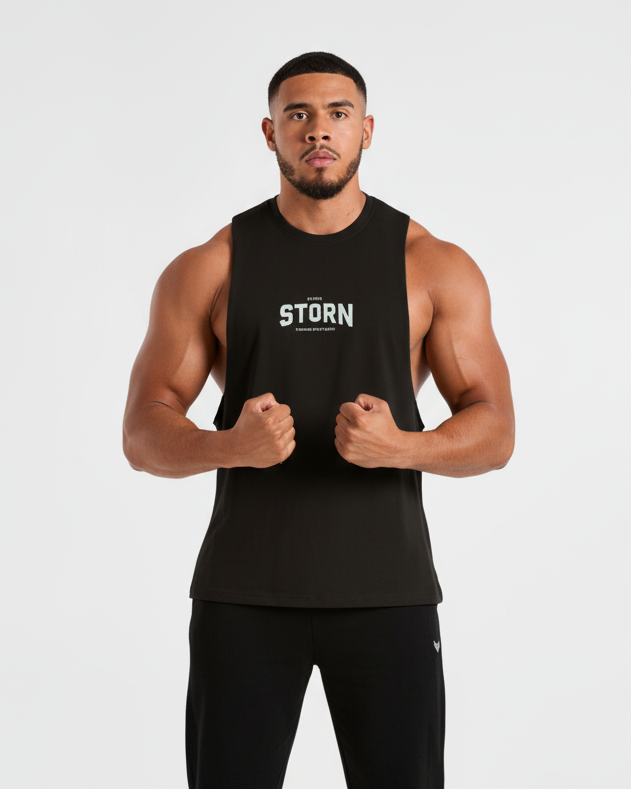 - Classic drop arm cut to show off your physique